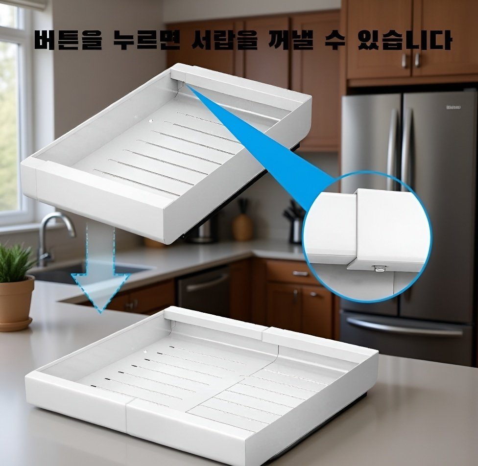 서랍형 펀치프리 수납선반 냄비수납선반 신축성 미끄럼선반 조미료수납선반